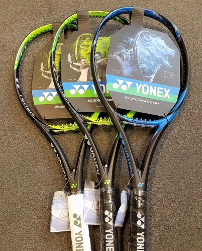 Yonex EzoneThis racquet has become increasingly popular among pros such as Naomi Osaka and Nick Kygios to name a few. This is a well-rounded racquet that offers exceptional feel and a balance of power, control and spin potential. Available in 98 or 100 sq in head sizes, a standard or light weight, as well as an extended length. |
